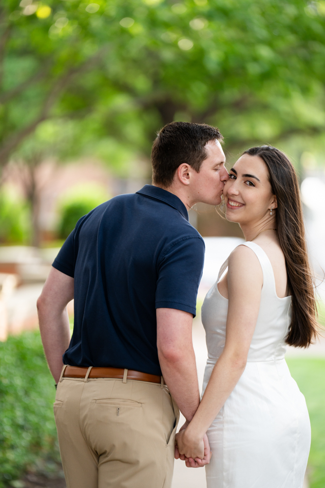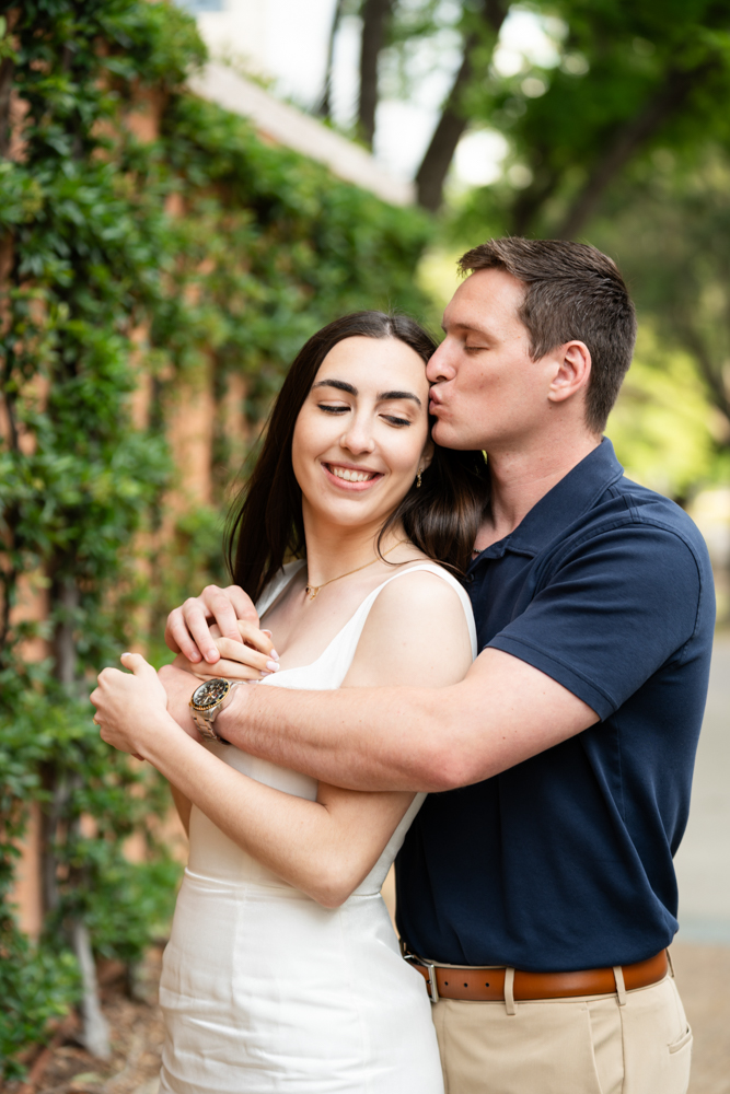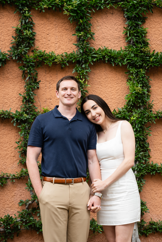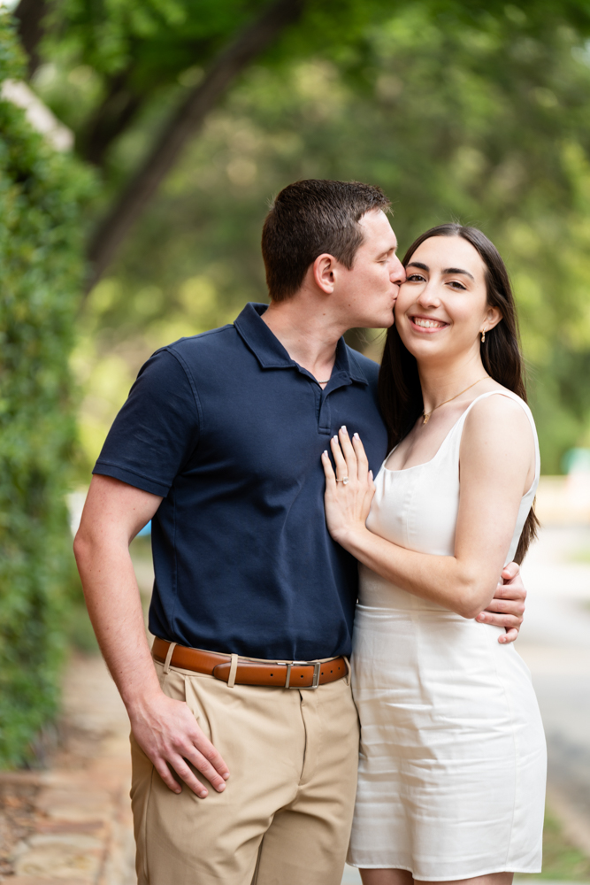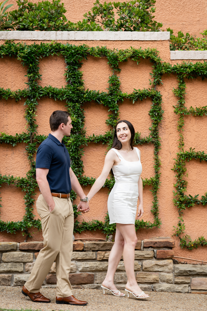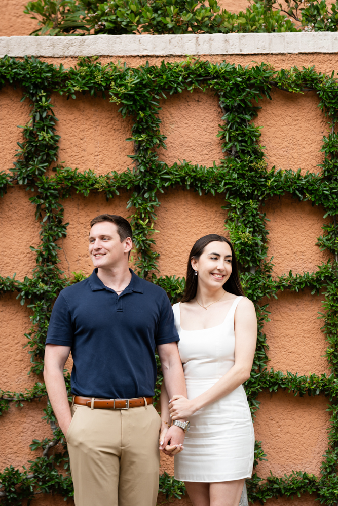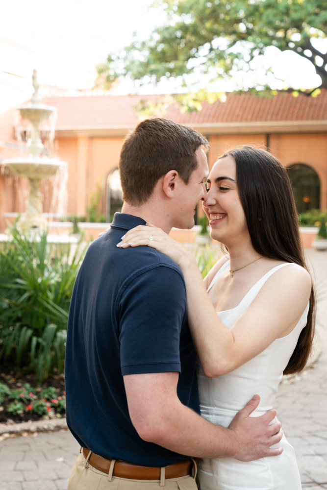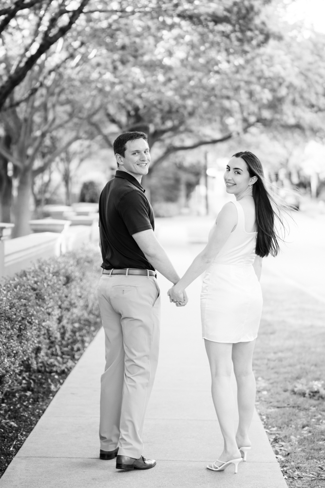Set against the lush grounds of the Rosewood Mansion on Turtle Creek, their engagement session was filled with vibrant greens, soft light, and the kind of calm joy that comes from simply being present together. And of course, their sweet pup Lola made the day even more personal, adding playful moments and a layer of home to an already beautiful setting.