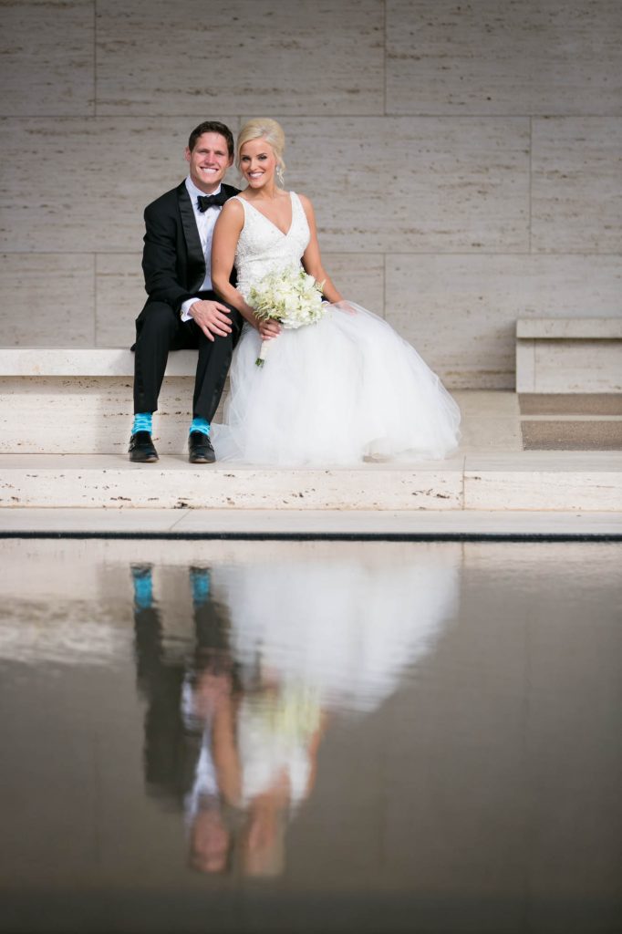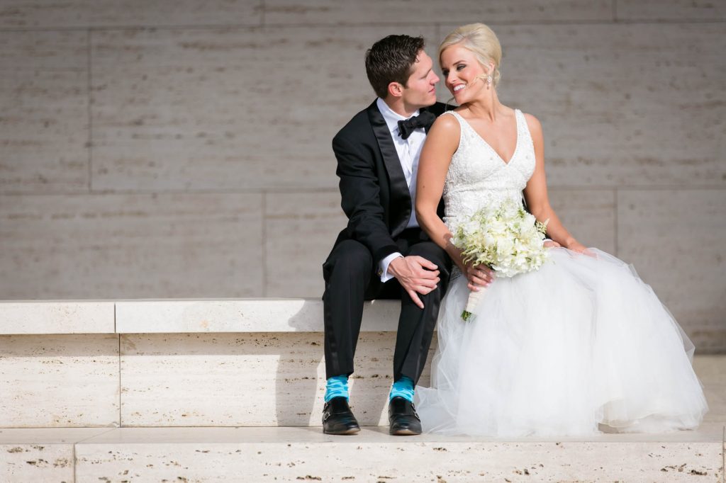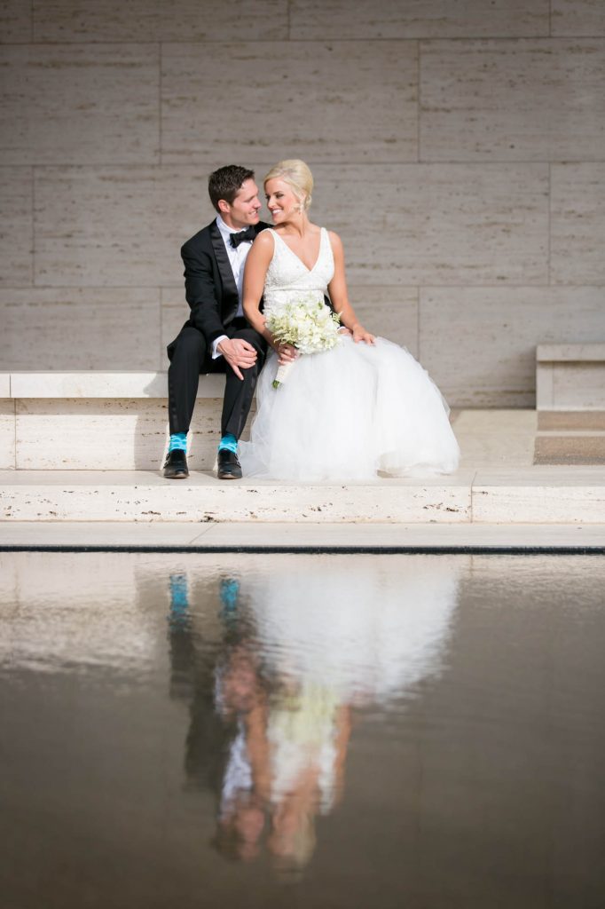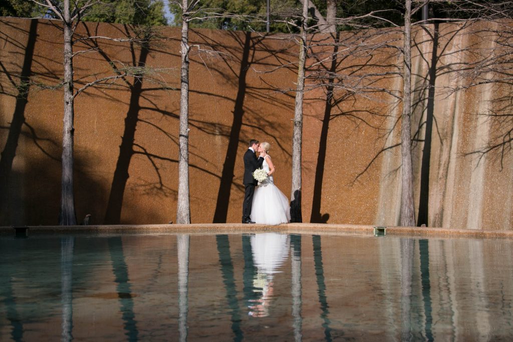 After an emotional first look at the Worthington Renaissance Fort Worth Hotel, we headed out for portraits that reflected Allie’s vision: classic, clean, and modern. The Kimbell Art Museum and Fort Worth Water Gardens provided the perfect architectural backdrop for romantic couple shots and fun, relaxed bridal party photos.