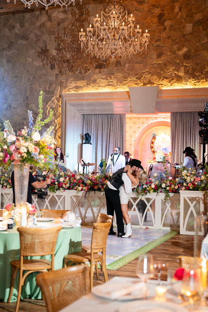 With the ceremony and reception both held at Hotel Drover, guests enjoyed seamless transitions between heartfelt moments and lively celebration. Personal touches were everywhere—from custom stationery by Paper Haven to a one-of-a-kind dance floor that brought the party to life with Plush Party Band.