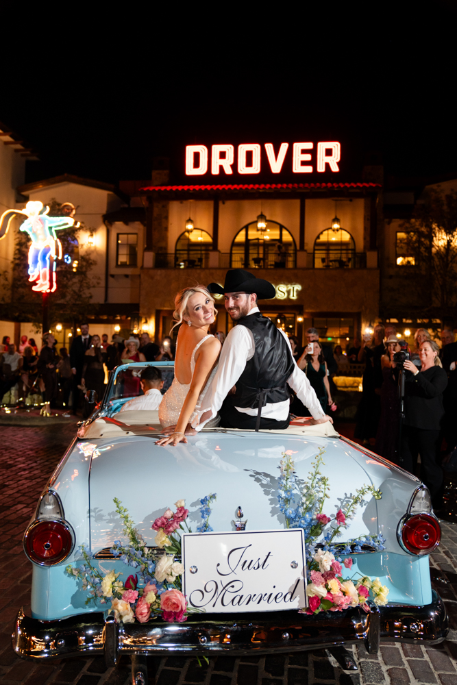 Megan and Nick’s wedding day was a bold, joy-filled celebration from start to finish. Hosted at the iconic Hotel Drover and planned by Rachel Giles of Honey and Co Weddings, their Fort Worth affair brought together rich color, custom details, and non-stop fun.