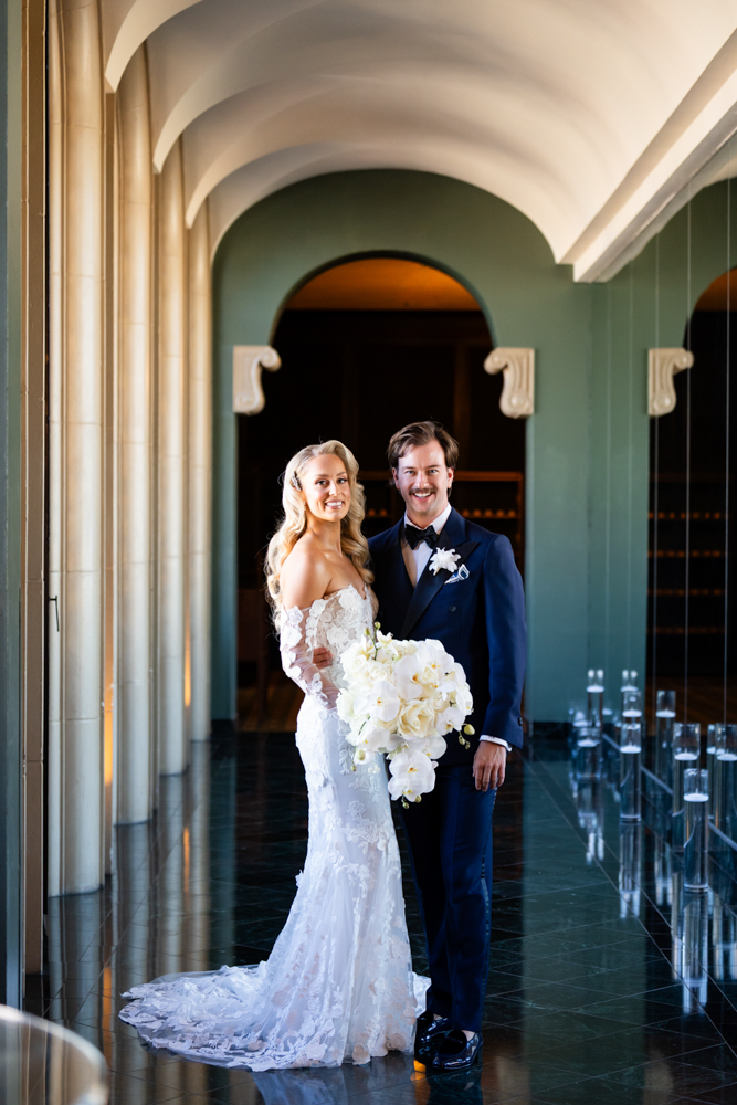 Libby and Jonathan’s Fort Worth wedding at The Fort Worth Club was an editorial-inspired celebration layered with refined fashion, meaningful faith, and sophisticated design. Located in the heart of downtown Fort Worth, The Fort Worth Club provided the perfect setting for their elevated and intimate wedding day.