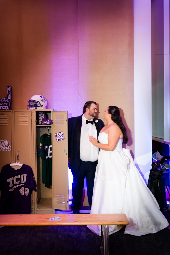 From there, we traveled to Texas Christian University for their ceremony at Robert Carr Chapel. The chapel never disappoints. Classic architecture, beautiful light, and a sacred stillness that makes each vow feel weighty and timeless.