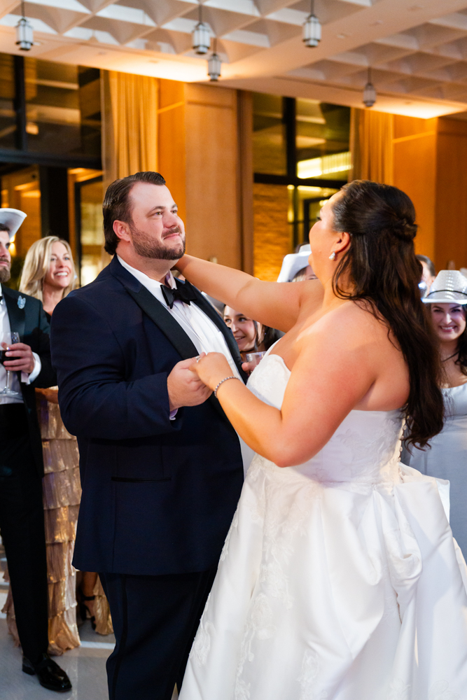 The new atrium at The Crescent Hotel Fort Worth has completely transformed the event spaces, adding light and architectural beauty that elevated the entire evening. They danced, laughed, and lingered with friends well into the night before slipping away to begin their honeymoon in California.