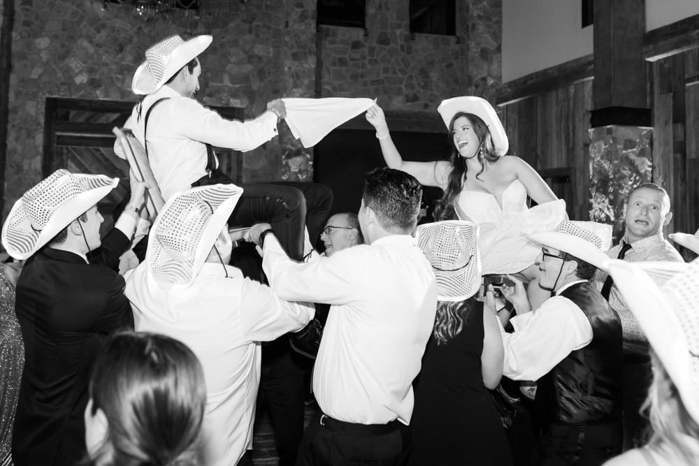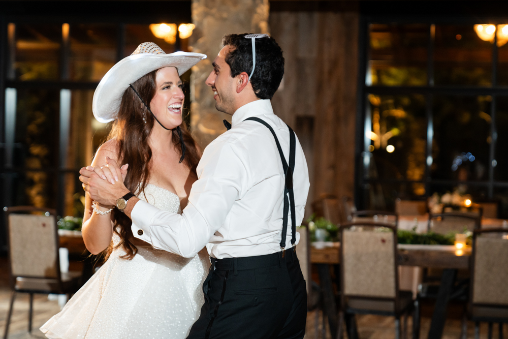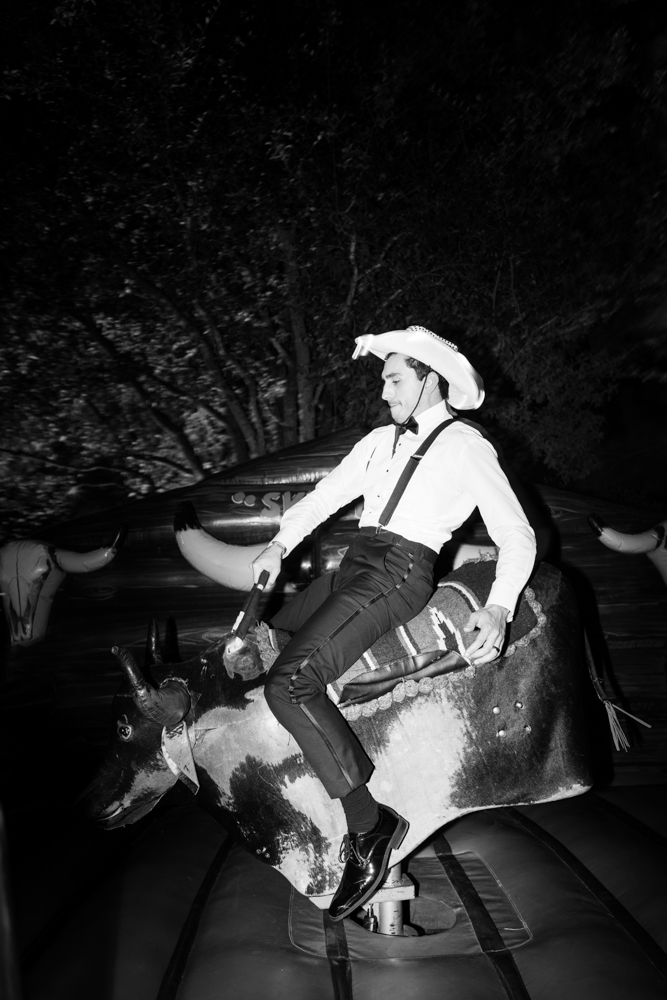 The reception featured crisp white florals, emerald green accents, and gold touches throughout—brought to life with rentals from Render Events and sweet surprises like beer burros from Sweet Ass Servers. Guests left audio messages at the Memories Out Loud guestbook, danced all night to It’s Your Night Entertainment, and even took a ride on the mechanical bull—a true nod to Texas fun and a guest favorite.